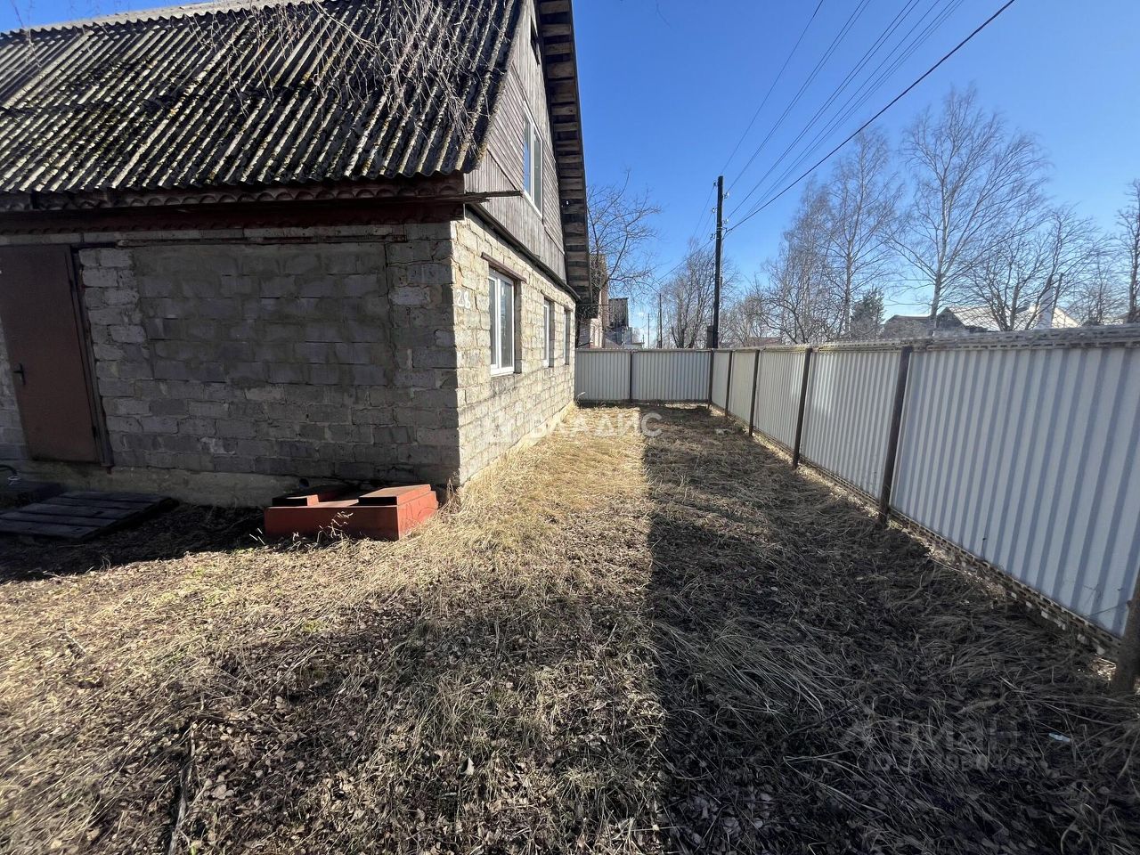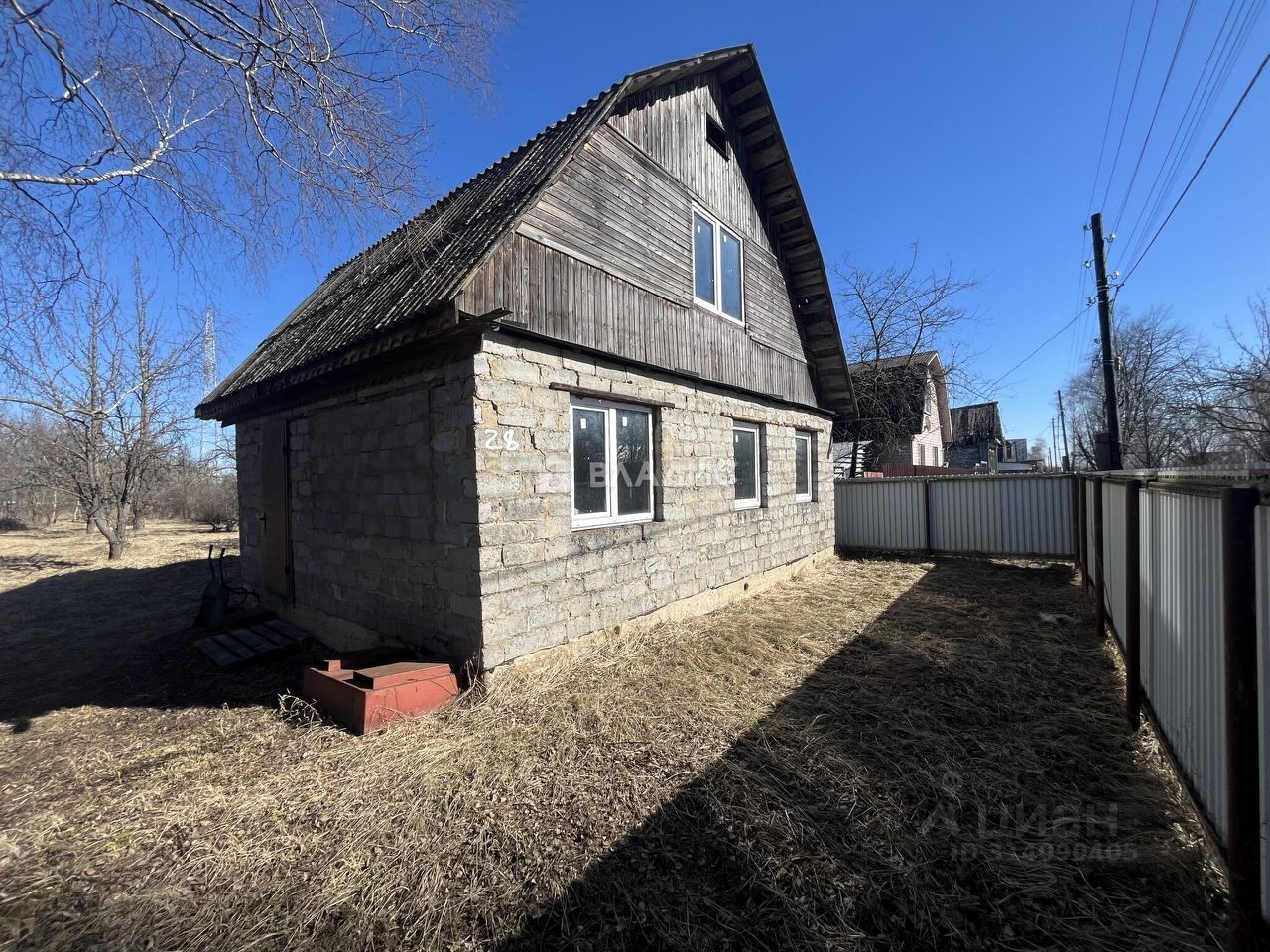 Дом построен из блоков, перекрытия деревянные. Год постройки — 2008, общая площадь — 98,8 кв(вместе со вторым этажом) , жилая площадь — 49 кв. м. В доме три комнаты площадью 15 кв. м каждая, кухня — 14 кв. м. Высота потолков — 2,5 метра. Без отделки. Отопление отсутствует. Подъезд к участку асфальтированный. В данной деревне все центральные коммуникации по границе участка , вода , свет , газ.