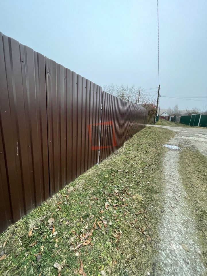 Участок огорожен забором, профлись. Есть ворота и стоянка под машину.