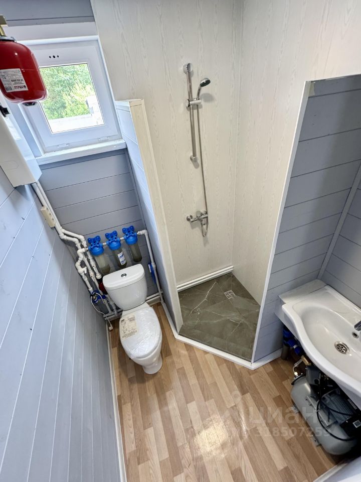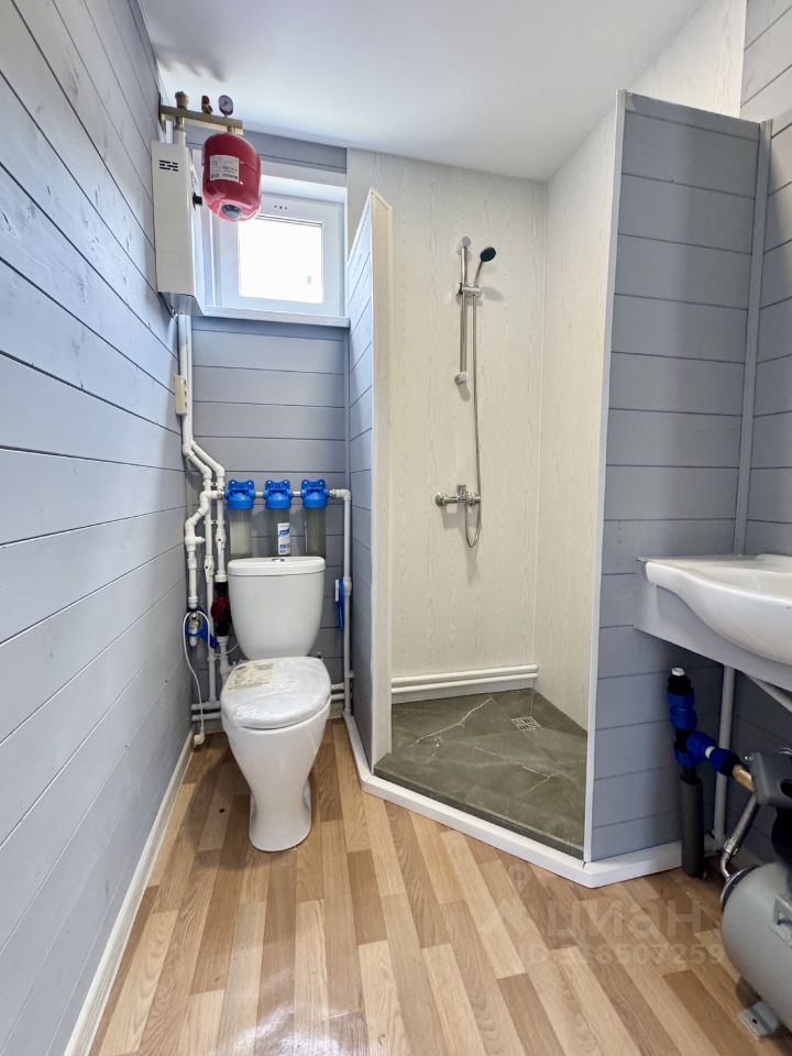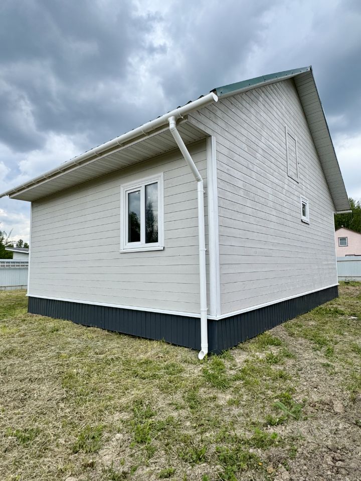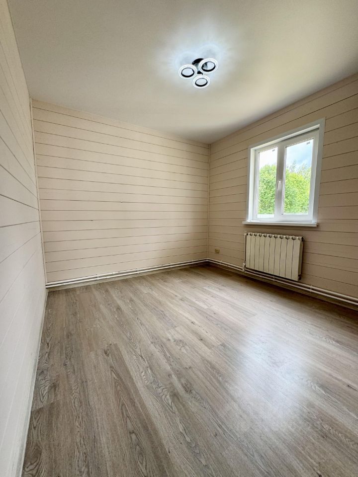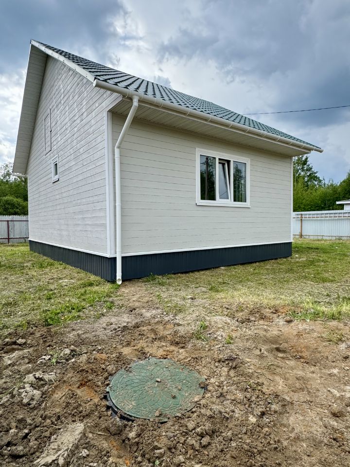 Технические характеристики: построен в 2025 году, фундамент на винтовых сваях, стены толщиной 150 мм, внешне отделан имитацией бруса , утепление минеральной ватой, пластиковые окна, крыша из металлочерепицы. Электричество проведено по всему дому, канализация — септик из трех бетонных колец, скважина охватывает все точки, отопление обеспечивается электрическим котлом мощностью 5 кВт с радиаторами.