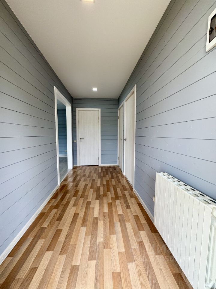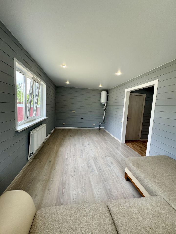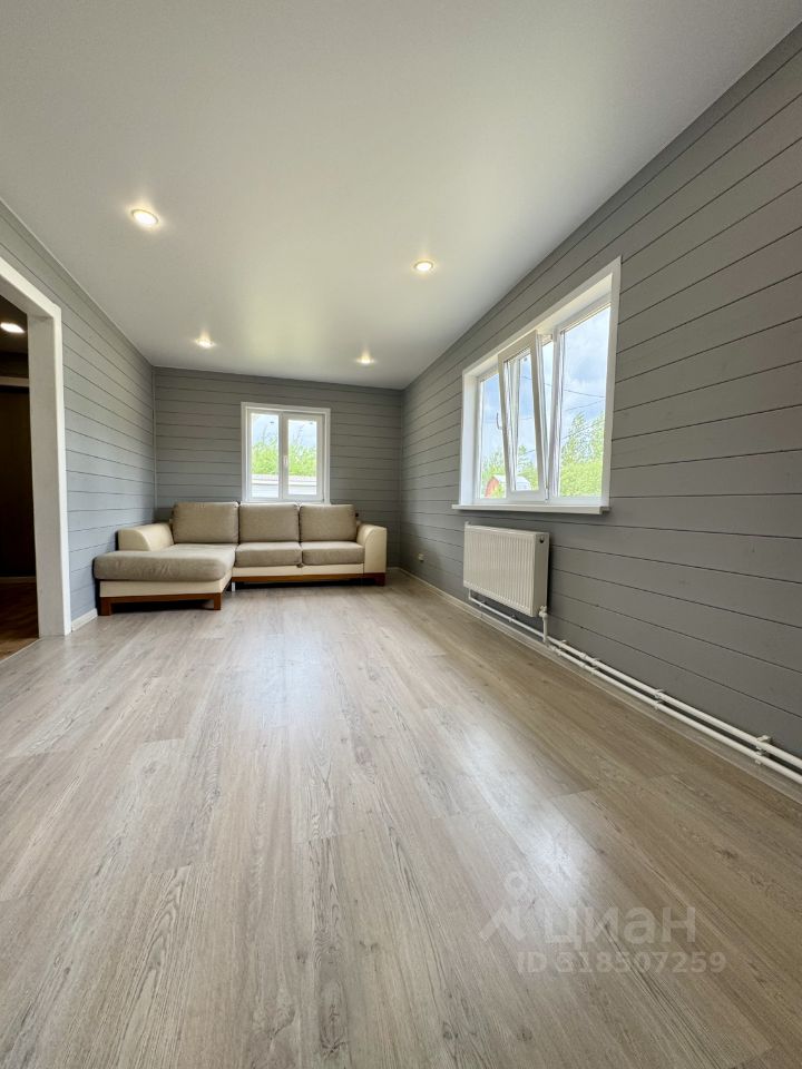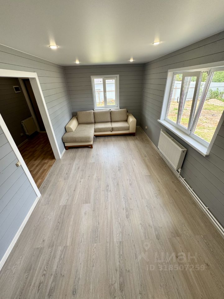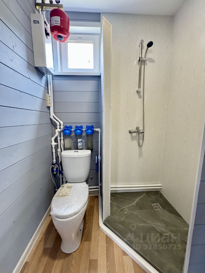 Технические характеристики: построен в 2025 году, фундамент на винтовых сваях, стены толщиной 150 мм, внешне отделан имитацией бруса , утепление минеральной ватой, пластиковые окна, крыша из металлочерепицы. Электричество проведено по всему дому, канализация — септик из трех бетонных колец, скважина охватывает все точки, отопление обеспечивается электрическим котлом мощностью 5 кВт с радиаторами.