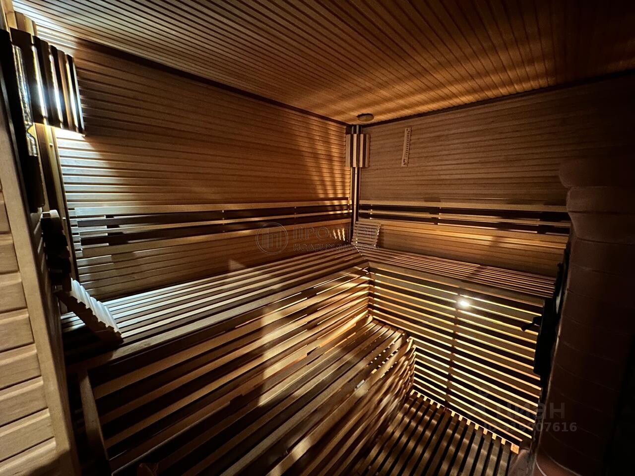 Банный комплекс: большая гостиная с кухонной зоной, 2 совмещенных сан узла, при выходе из парильной зоны размещены дополнительные 2 душевые кабины и бассейн. Своя котельная. На втором этаже расположена комната.
