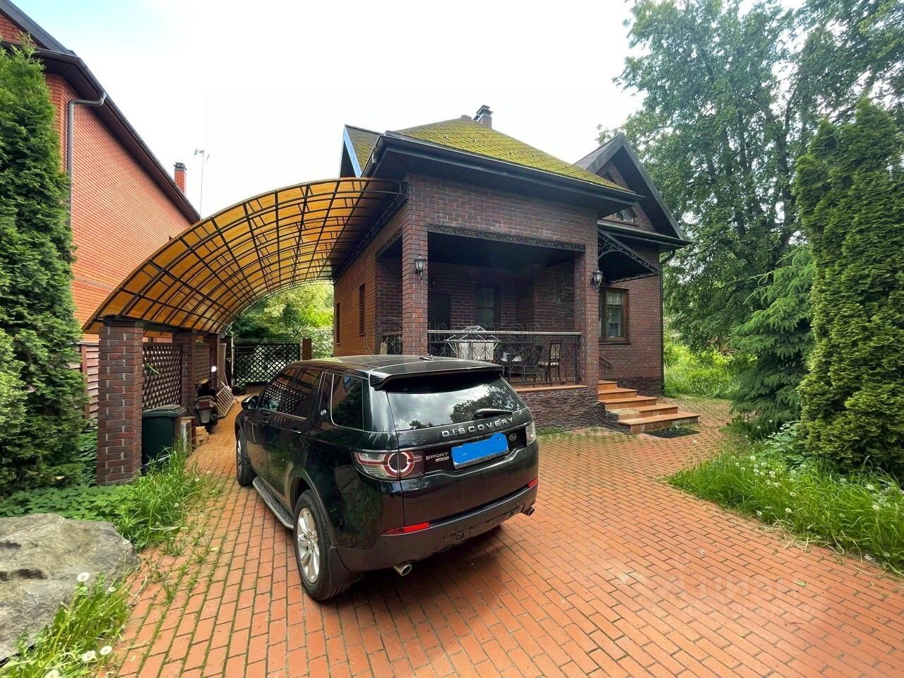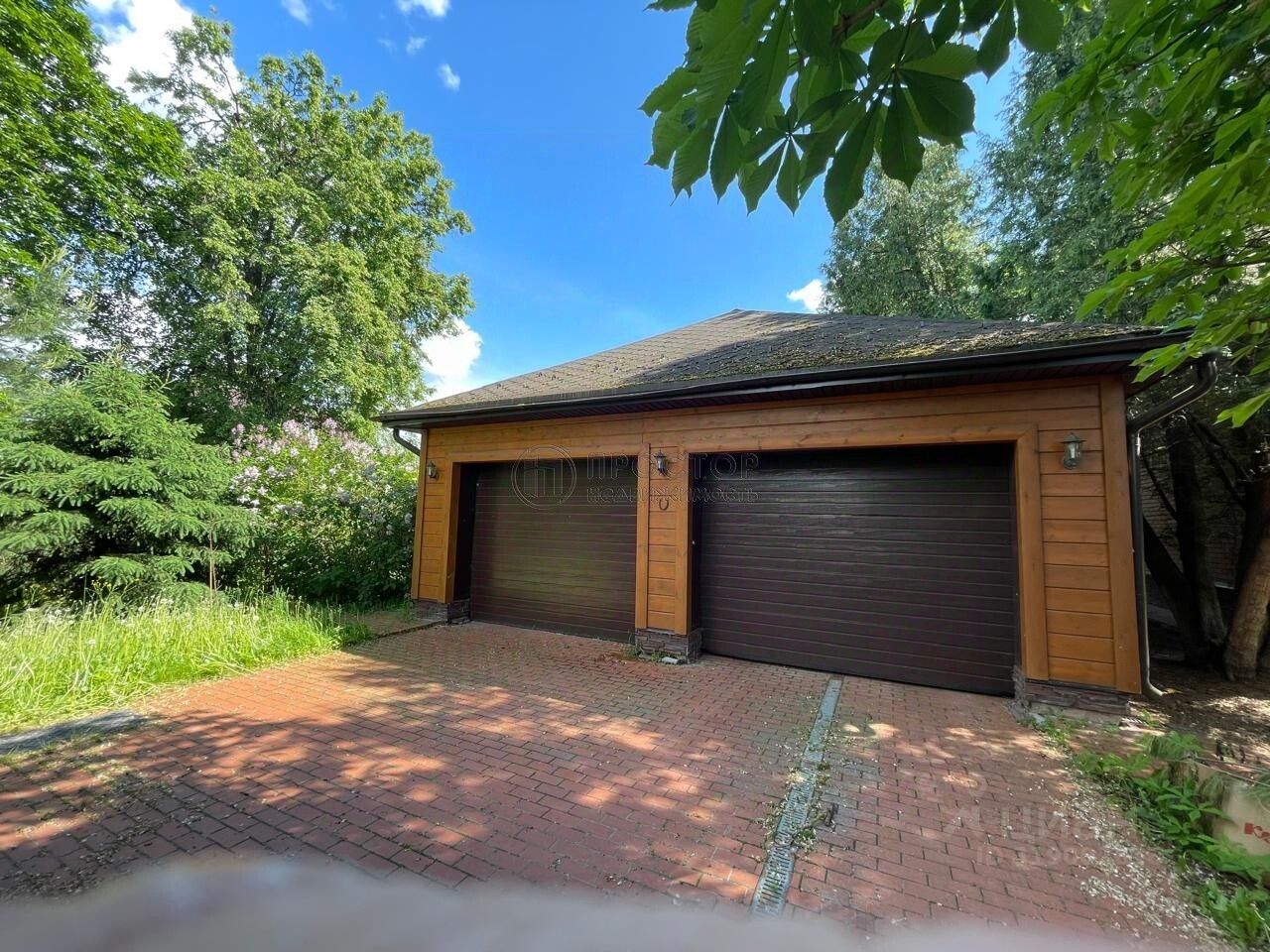 На участке есть капитальный гараж на 2 автомобиля с электроприводом дверей и 2 места под навесом рядом с домом.