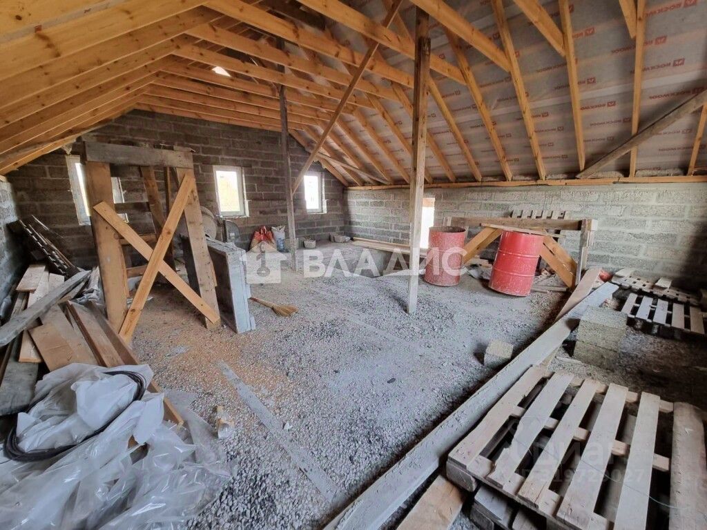Дом построен в 2021 году из блоков. Перекрытия монолитные. Кровля сделана из железа. Дом без отделки.