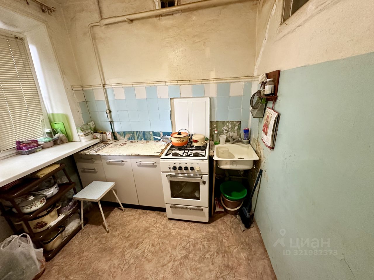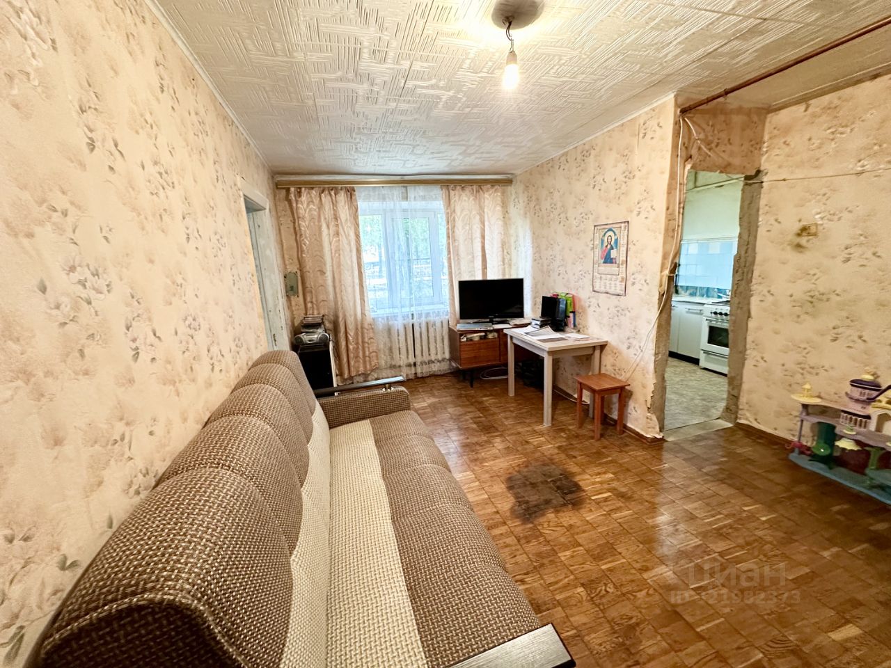 Общая площадь 41,4 кв. м., комнаты смежные площадью 16 кв. м. и 10,5 кв. м., кухня 6 кв. м., есть кладовка. Состояние квартиры среднее, требует косметического ремонта, сан узел совмещенный. Окна выходят во двор. 1-й этаж 4-х этажного кирпичного дома, квартира не угловая.