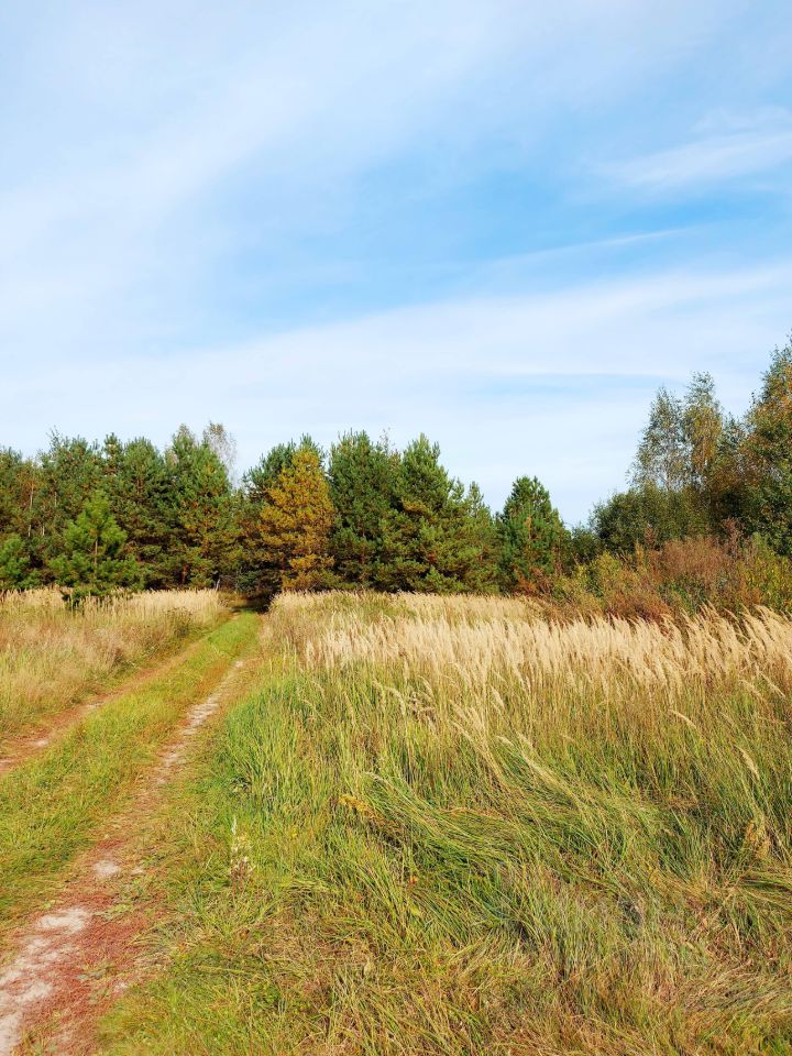 Правильной формы, ровный, сухой, с видом на сосновый лес