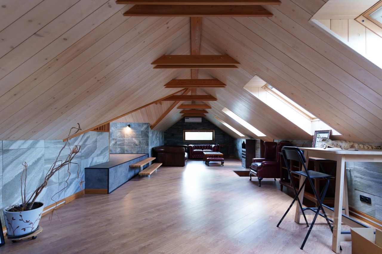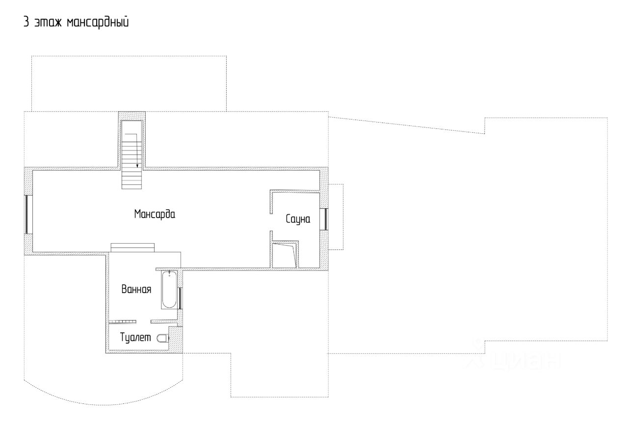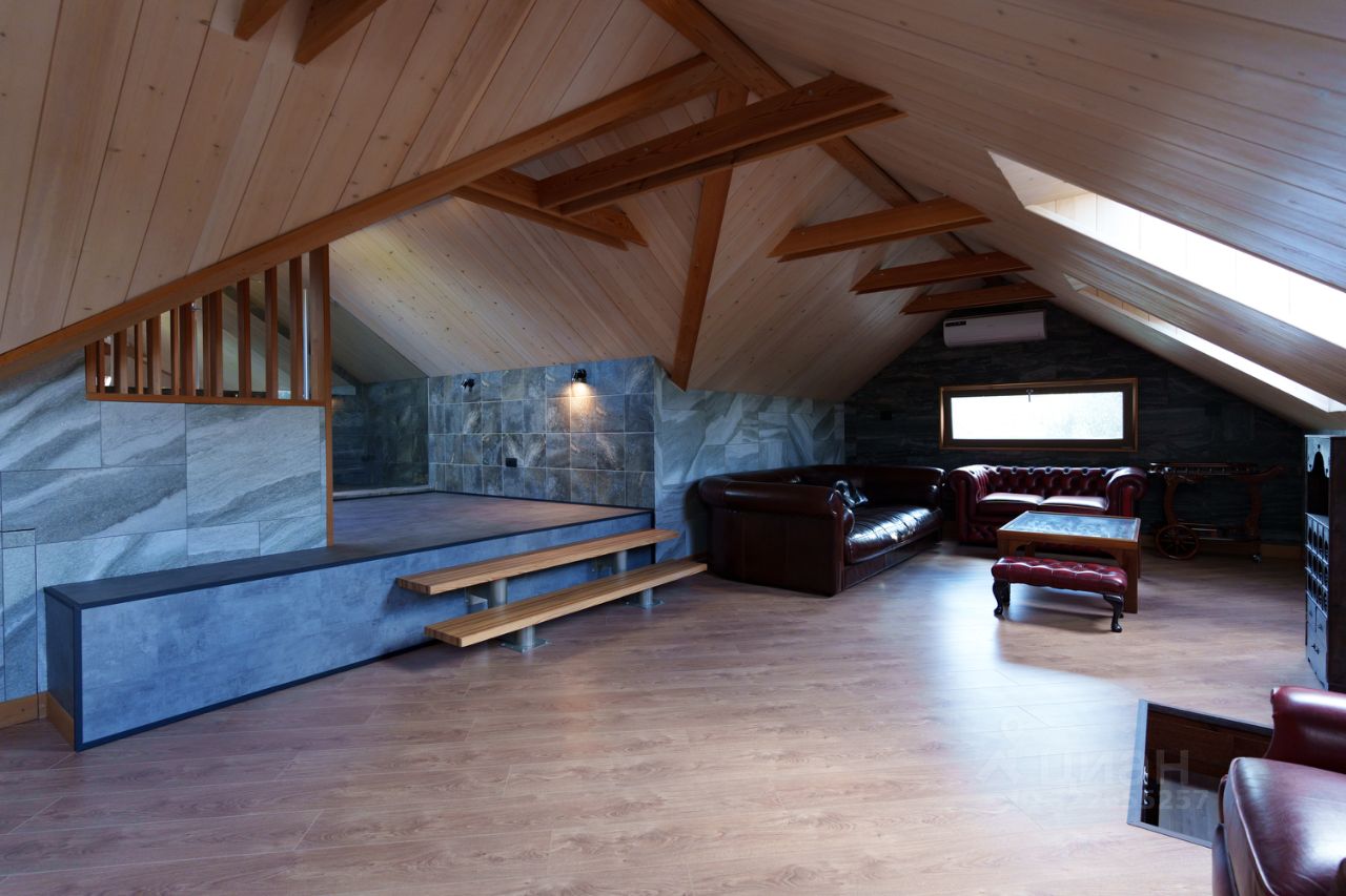 Третий уровень (мансарда) - электрическая сауна, санузел с утопленной ванной в пол с видом на окно, комната отдыха / спортзал / кабинет.