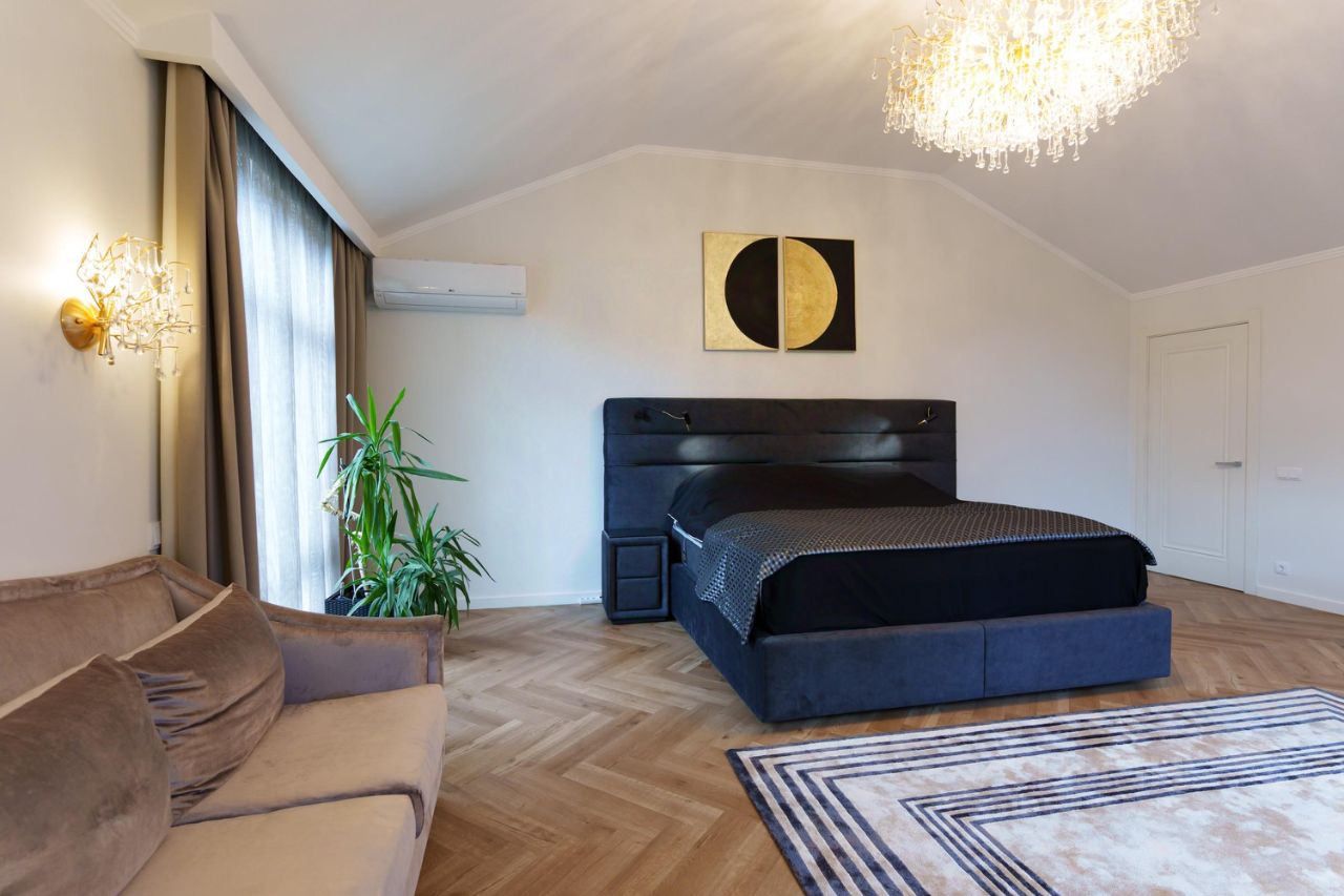 Второй уровень - мастер-спальня с гардеробной и совмещенным санузлом, две спальни со своими санузлами, детская комната с антресолью (можно переоборудовать под любой функционал - кабинет, мастерскую, просторную гардеробную и все, к чему призывает фантазия).