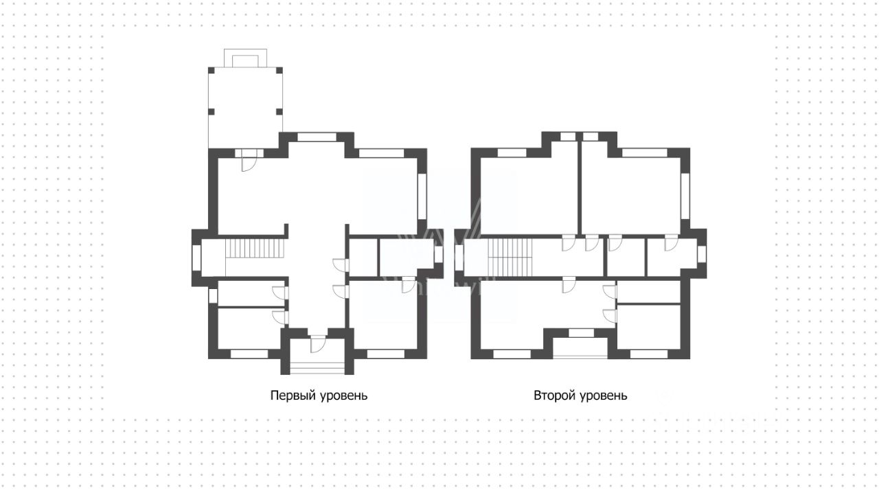 Поэтажное описание • Первый уровень: прихожая, кухня-гостиная-столовая с террасой, спальня с санузлом, помещение свободного назначения, санузел, котельная. • Второй уровень: мастер-спальня с гардеробной, санузлом и балконом, спальня с гардеробной и санузлом, кабинет.