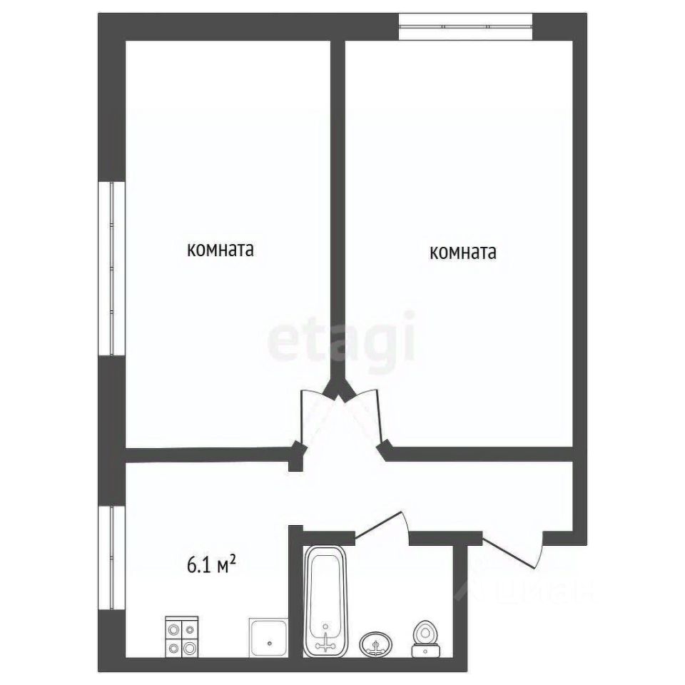 Кухня 6.1 квадратных метров, санузел совмещенный.