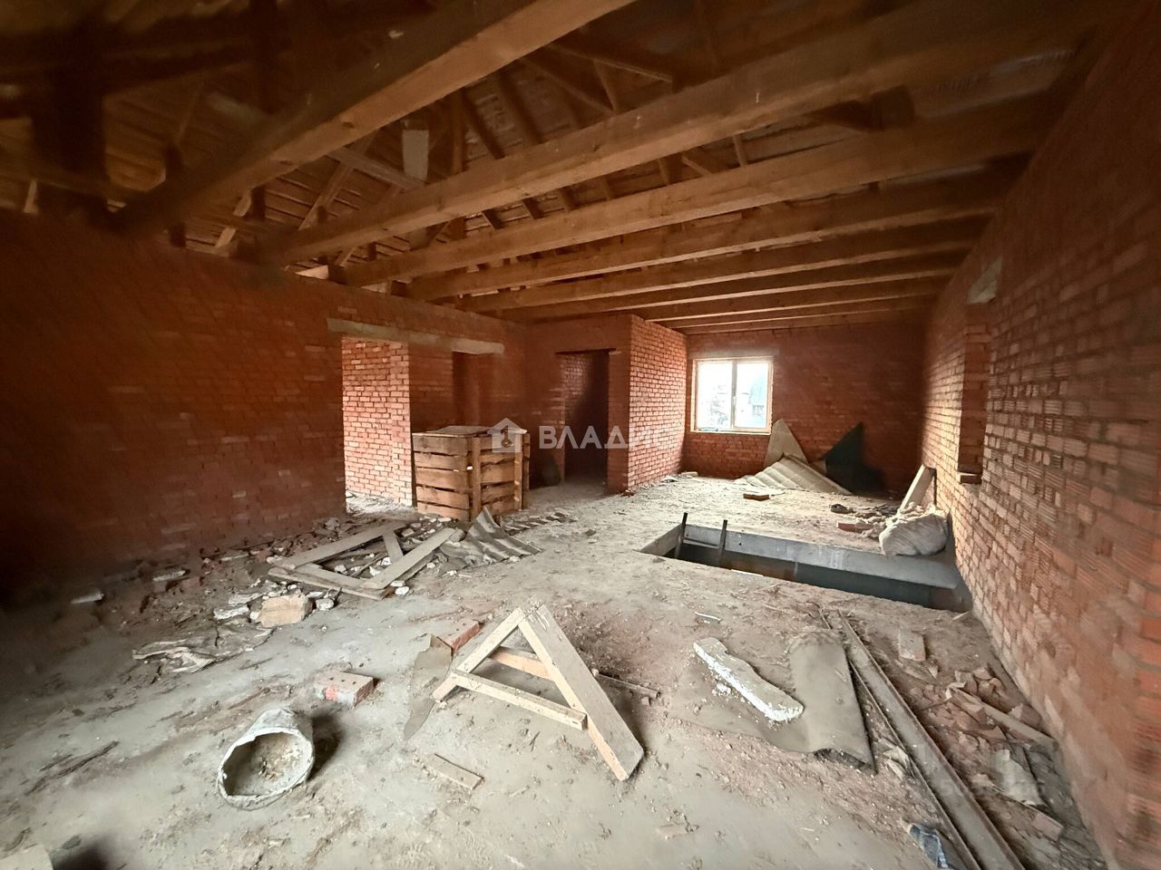 Коммуникации подведены — есть электричество. Материал кровли — металлочерепица, что обеспечивает надёжность и долговечность. Дом построен из кирпича, перекрытия смешанные.