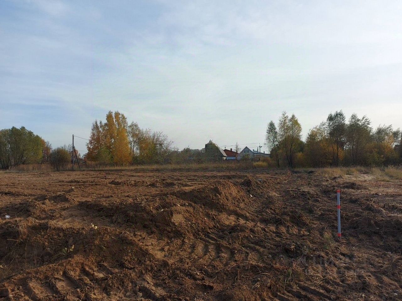 Продается земельный участок, который уже отсыпан и очищен от деревьев. Участок поднят, привезена земля, установлены колышки для обозначения границ.